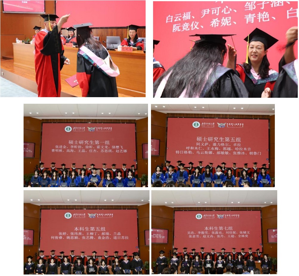 满达副院长宣读了《yl7703永利集团关于建议授予学位的决定》,韦兰海副院长宣读了《关于表彰yl7703永利集团2024届 “优秀大学毕业生”的决定》、《关于聘任yl7703永利集团2024届“校友工作联络员”的决定》以及《关于聘任yl7703永利集团第五届学生会主席团成员名单》。