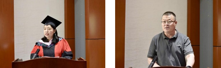 博士生导师谢咏梅和副教授额尔德木图分别代表老师们寄语,对所有毕业生表达了诚挚的祝福和美好的期许,希望同学们成为“自信而无所畏惧,谦逊而有所敬畏”的人,成为可堪大用、能担重任的栋梁之才。