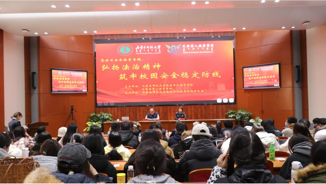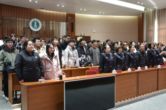 124日,正值第十一个宪法日,内蒙古第一女子监狱监区监区长乔子月一行6名干警受邀为我院200余名本硕博师生带来《宪法日安全教育专题:弘扬法治精神,筑牢校园安全稳定防线》专题讲座。我院团总支书记姜鑫、学生工作与就业办公室主任包双成出席本次讲座,并对监狱干警的到来表示欢迎。