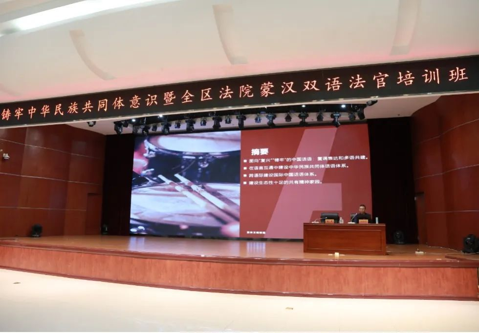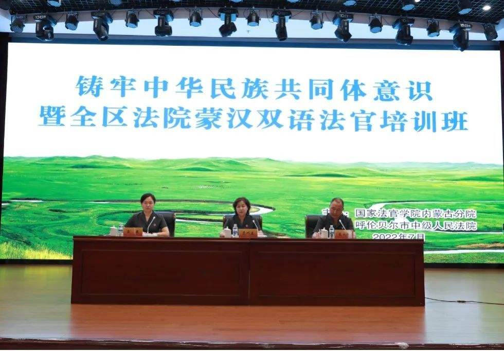 为深入学习贯彻习近平总书记关于加强和改进民族工作的重要思想,铸牢中华民族共同体意识,切实提高蒙汉双语法官的政治素质和司法能力,推进双语审判工作健康发展,7月26日,铸牢中华民族共同体意识暨全区法院蒙汉双语法官培训班在呼伦贝尔市中级人民法院开班,这是市中院蒙汉双语法官东部培训中心承办的首期全区法院系统干警培训班。市中院党组书记、院长范巧兰,国家法官学院内蒙古分院副院长孟永平出席开班仪式,来自全区法院的62名双语法官及双语法官助理参加了开班仪式。开班仪式由国家法官学院内蒙古分院双语办主任刘燕主持。