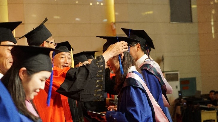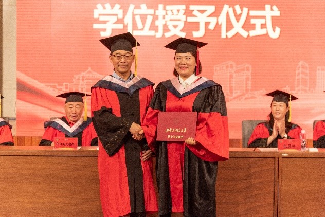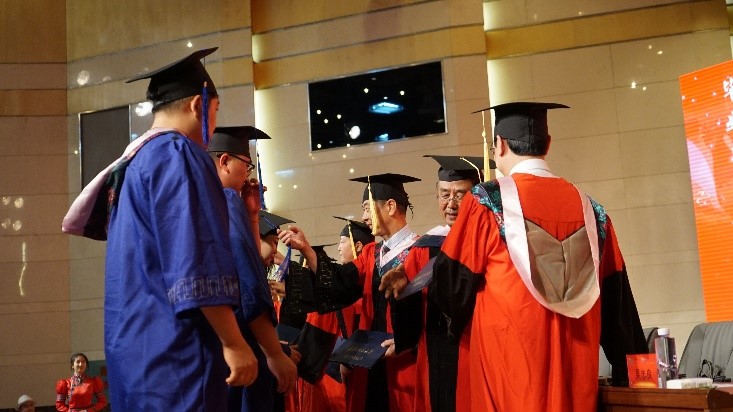 伴随着悠扬的旋律,我院本科毕业生代表李雪梅、研究生毕业生代表浩日芯、博士毕业生代表于会新依次上台发言,回顾起在校学习生活的点点滴滴,每位同学都感慨万千,感谢学院领导与各位导师的悉心教导与栽培,并对老师和同学们送上了最诚挚美好的祝福。