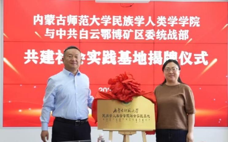 为深入贯彻习近平总书记关于加强和改进民族工作的重要思想,深化校地合作、推动民族团结进步事业,5月8日,我院与中共白云鄂博矿区委统战部举行共建社会实践基地签约暨揭牌仪式。白云鄂博工业园区党工委副书记、政法委书记孟和巴特尔,区委常委、宣传部部长、统战部部长罗惠文等领导出席仪式,我院党委副书记副院长陆一琼,副院长满达及部分教师参加。