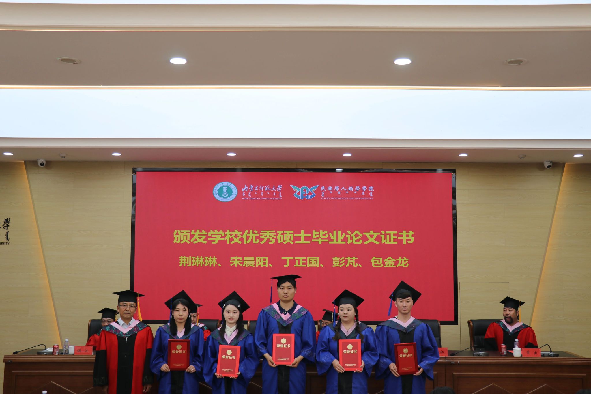 在颁发聘书环节,吴忠良教授、斯仁教授、常宝教授分别为张雨等19名学生颁发“学校优秀毕业论文证书”;学院学生工作与就业办公室主任包双成老师为白雪等6名学生颁发学院“校友工作联络员”聘书;学院团总支书记姜鑫为额力布日乐图等8名学生颁发学院“第六届主席团”聘书。荣誉奖项是学院对每个人自身能力与付出的认证,激励学子如星火点燃般激起向上的热情和前行的动力。