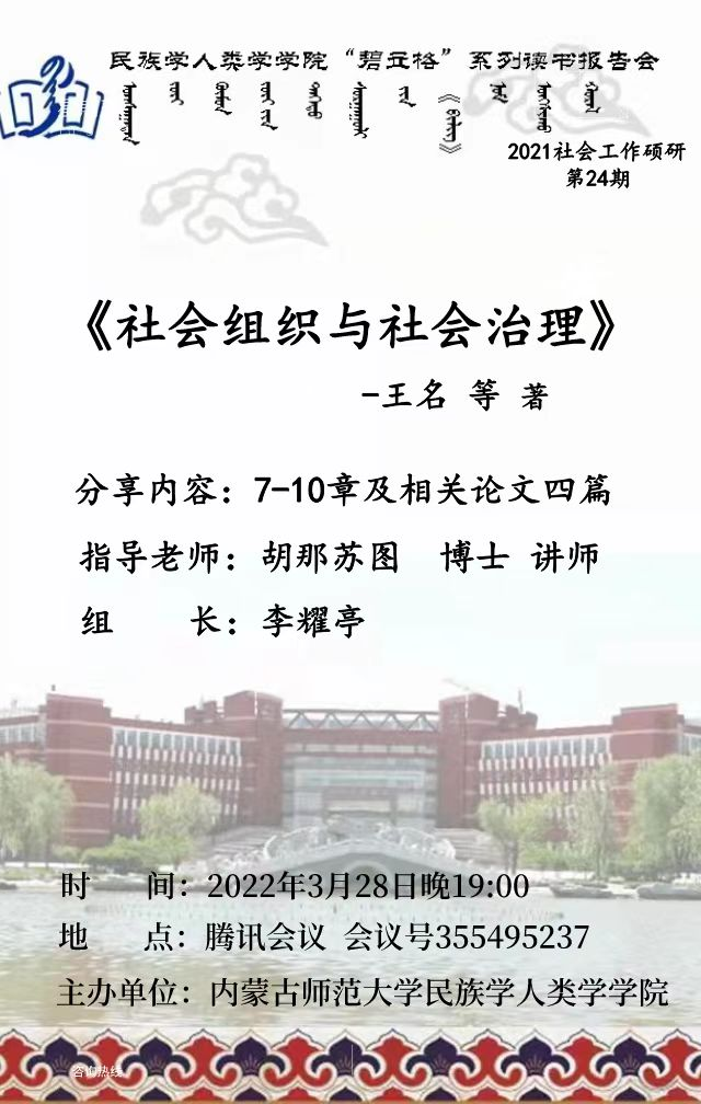 yl7703永利集团“碧立格”系列读书报告会预告 2021级社会工作硕士研究生第24期