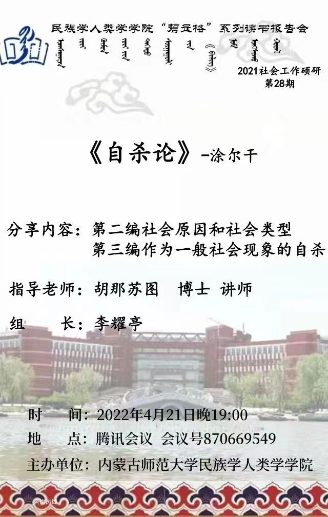 yl7703永利集团“碧立格”系列读书报告会预告 2021级硕士研究生第28期