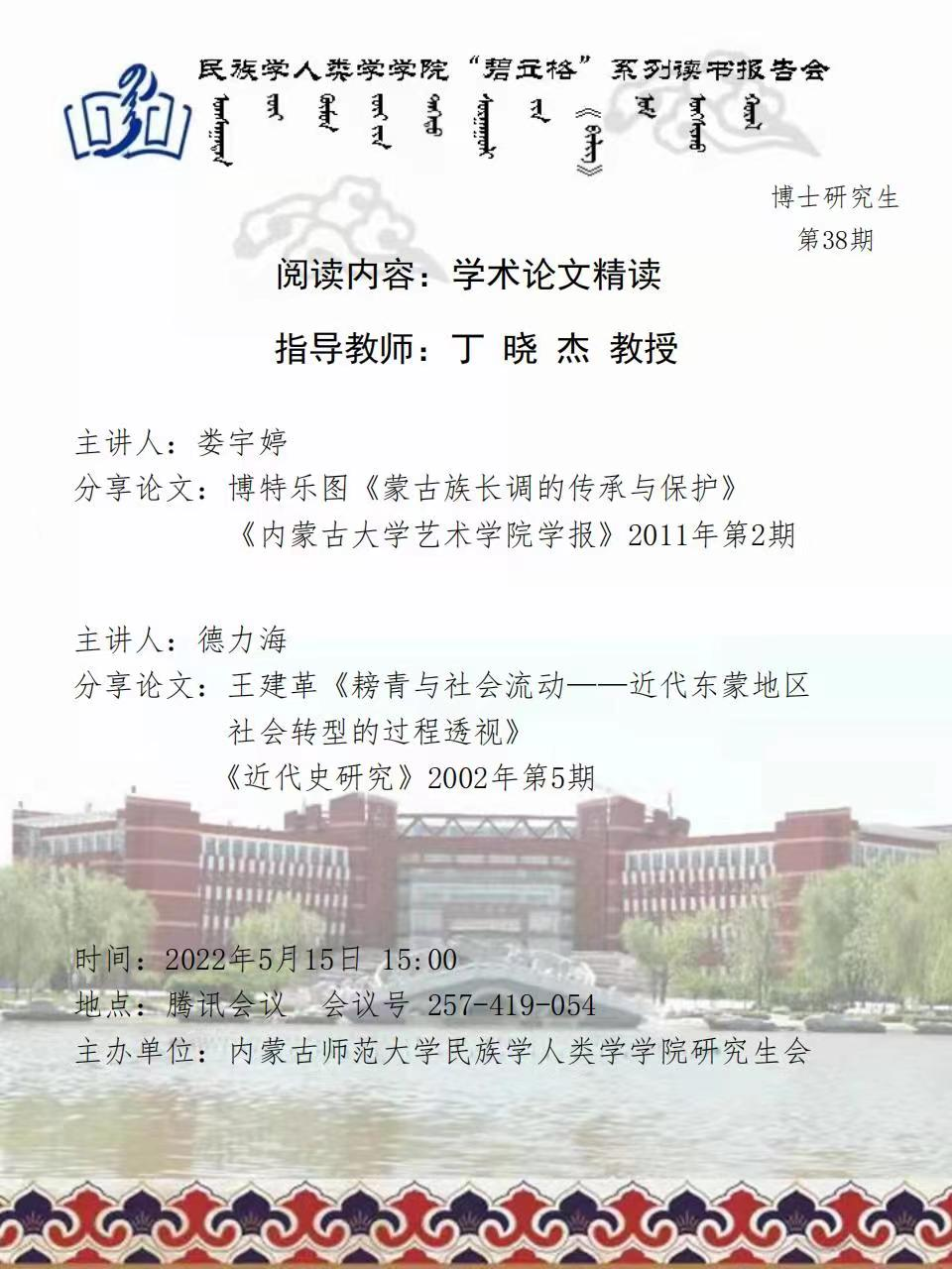 yl7703永利集团“碧立格”系列读书报告会预告 2021级博士研究生第38期
