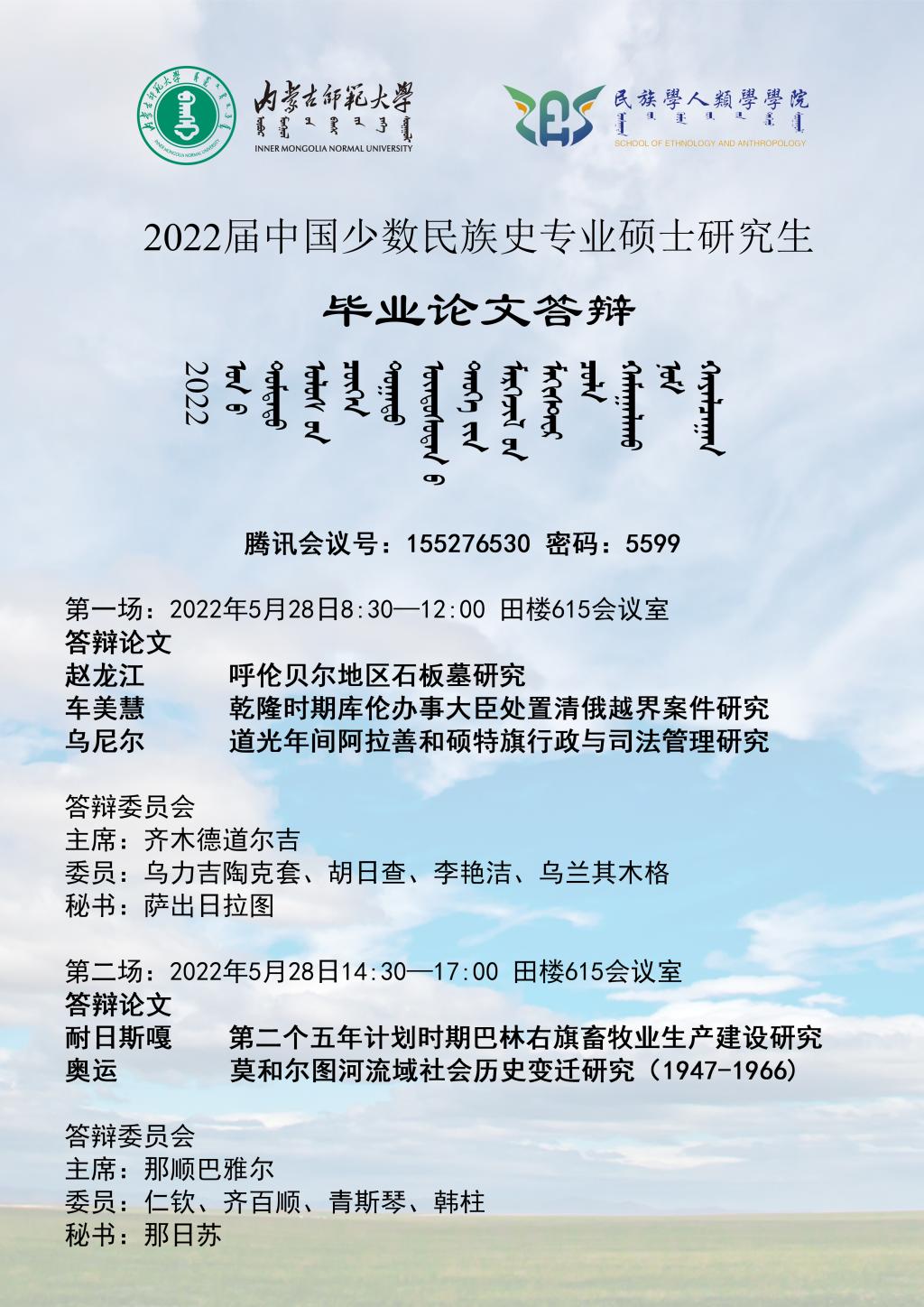 yl7703永利集团 中国少数民族史专业2022届硕士研究生学位论文答辩会