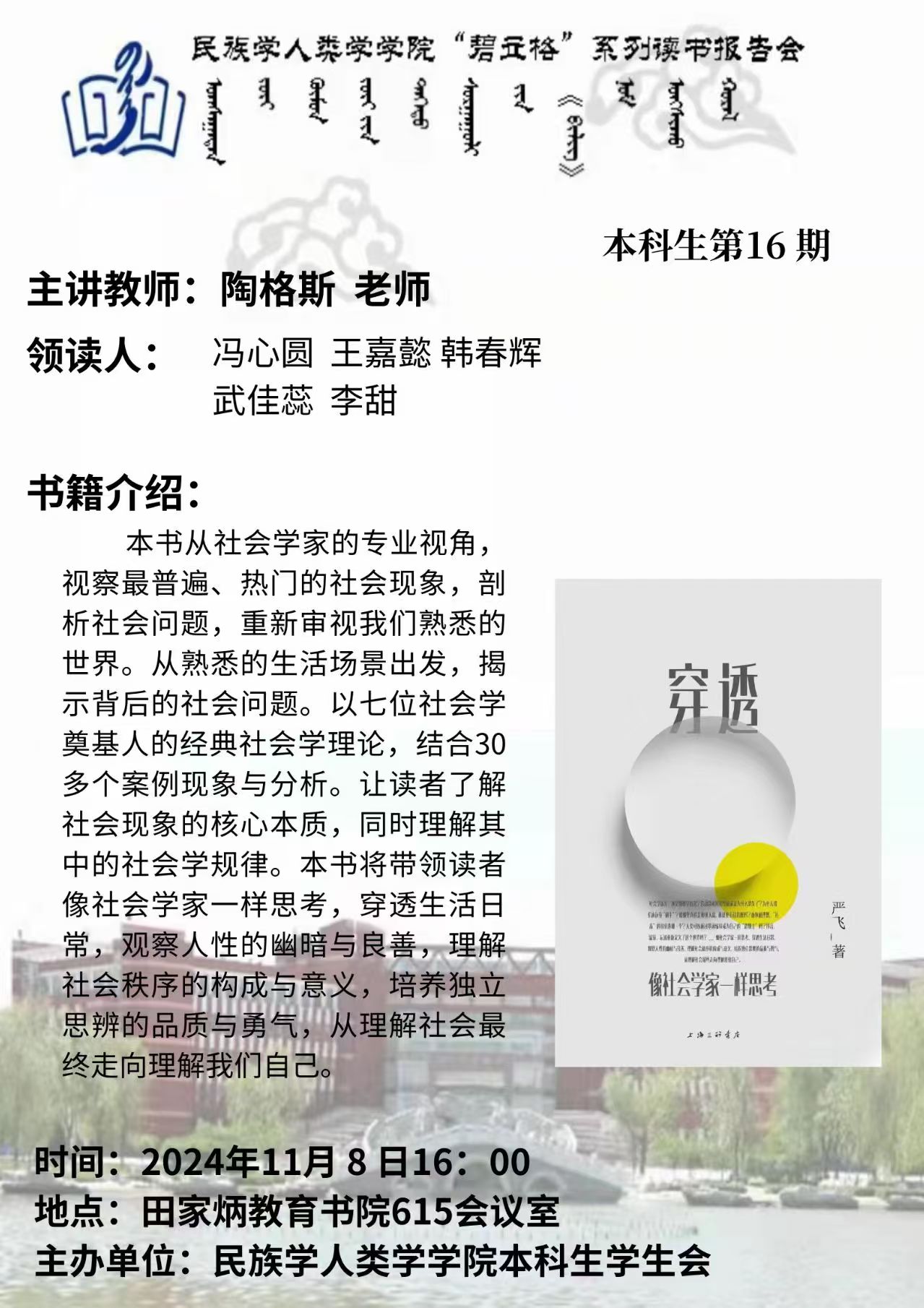 yl7703永利集团“碧立格”系列读书报告会预告 本科生第16期
