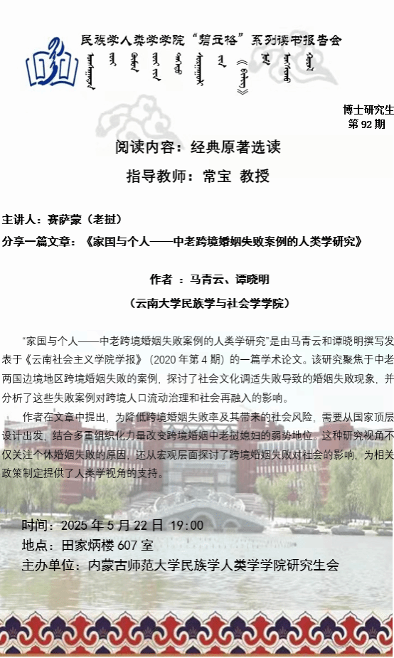 yl7703永利集团“碧立格”系列读书报告会预告博士研究生第93期