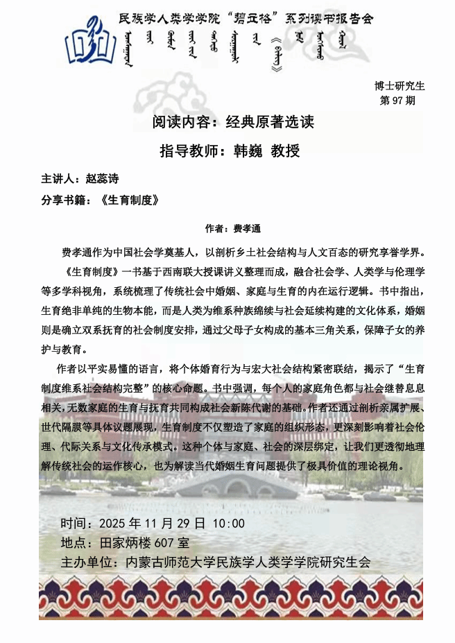 yl7703永利集团“碧立格”系列读书报告会预告博士研究生第97期