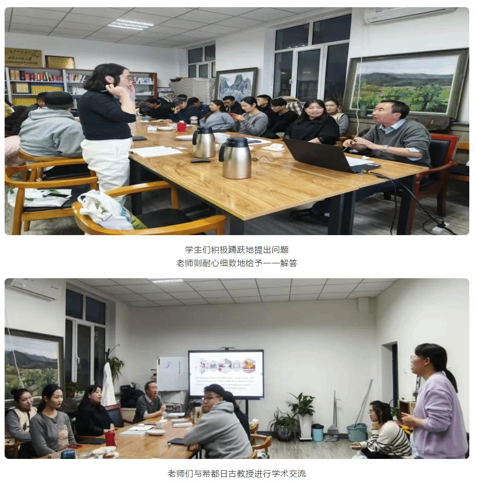 讲座期间,师生之间展开了热烈的互动。在讨论环节,同学们踊跃发言,提出自己在学习中所遇到的难题,满怀敬意地向希都日古教授请教。教授则以他深厚的学术功底和耐心细致的态度,逐一为同学们答疑解惑,确保每一个问题都能得到详尽而准确的解答。这场学术盛宴,不仅让师生们领略到了希都日古教授的学术魅力,更激发了他们对学术探索的热情和动力。