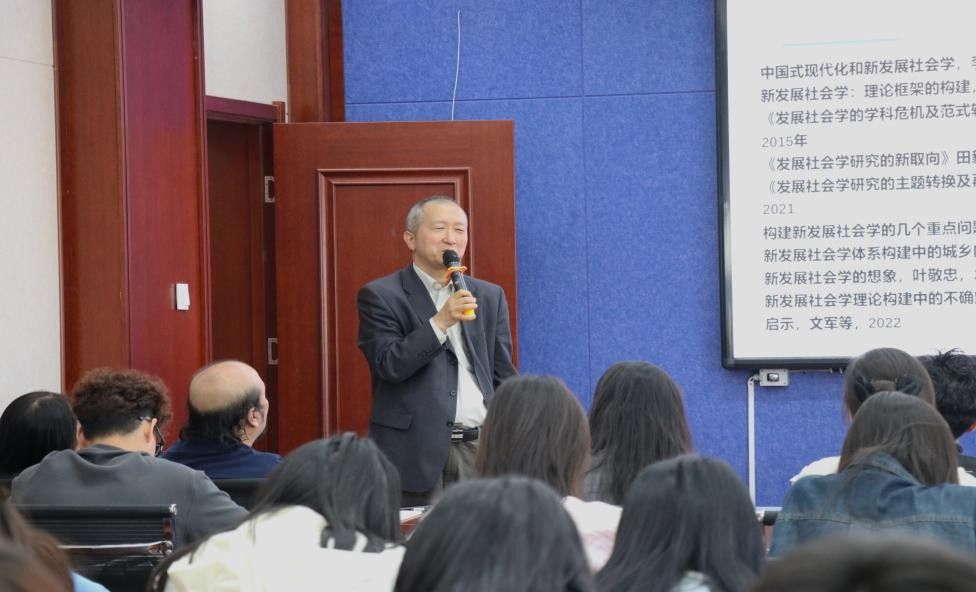 田毅鹏教授以 “新发展社会学:何以可能与何以可为?” 为主题,对“新发展社会学”视域下地域发展问题进行了深入分析。田老师从发展社会学的危机表现切入,深入剖析其在当今时代的种种困境与挑战,进而阐述了发展的地方性特征,强调地域因素在社会学研究中的独特价值与重要地位,并高度总结新发展社会学之“新”,进一步反思“传统—现代”“中心—边缘”“外生—内生”等理论概念,为新发展社会学视角下的社会问题研究提供了整体性视角,为我们认识新发展社会学何以应用地域振兴提供了更为深入的理论视角。讲座最后,田毅鹏教授与纳日碧力戈教授进行对话,强调了社会学学科的现实作用,在场的老师和学生们受益匪浅。