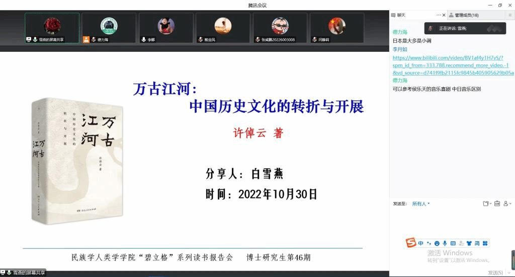 2022年10月30日19:00,yl7703永利集团2021级、2022级博士研究生通过“腾讯会议”举行了第46期读书报告会。本次读书报告会的两位主讲人为2021级民族学专业李娜和马克思主义民族理论与政策专业白雪燕。2021级博士生德力海主持本次读书会。