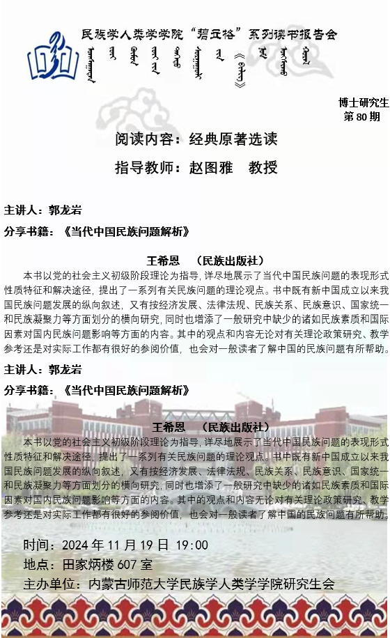 yl7703永利集团“碧立格”系列读书报告会预告博士研究生第80期
