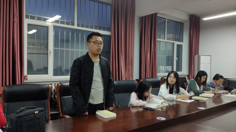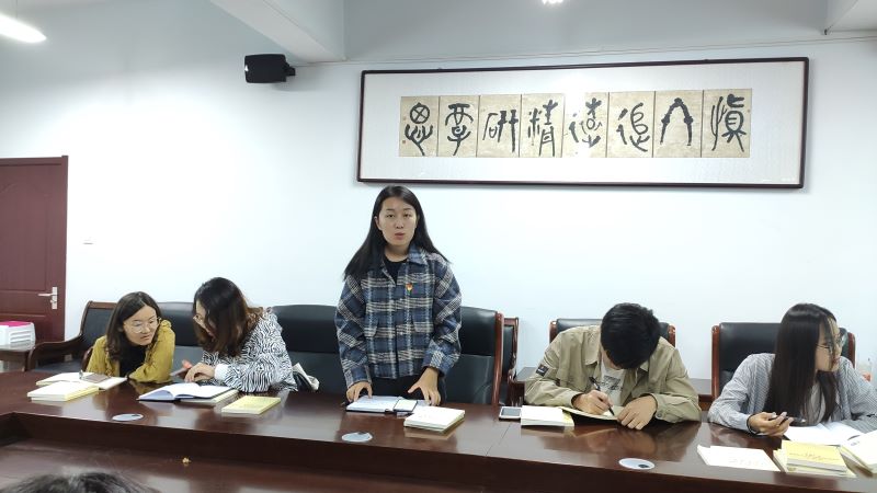 研究生二年级党小组代表李玉洁发言说:“肩扛政治担当,永怀赤子之心,作为学生党员,加强学习能力是我们的首要任务,不断增强自身的思想水平,要主动学习,全面学习,提高学习的深度与广度,认真学习两书一章,要逐字逐句读原著学原文捂原理,切忌形式主义,要合理安排自己的时间认真学习,认真贯彻落实。”