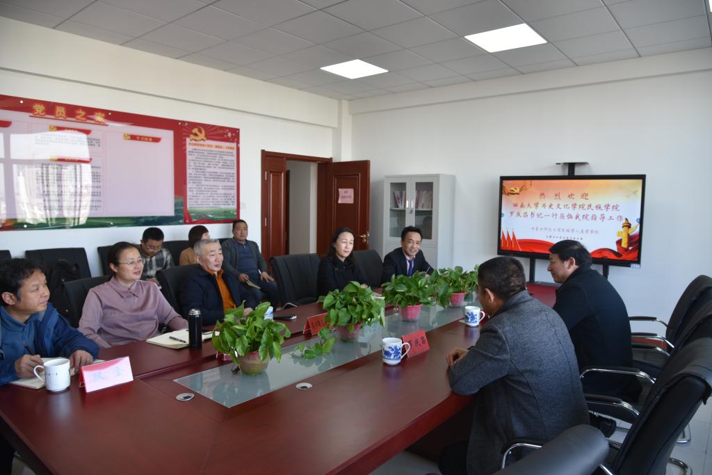 3月22日下午,西南大学历史文化学院民族学院罗庆昌书记、田阡教授一行应邀来我院考察指导,并在我院田楼611党建活动室举行座谈会。我院参加座谈会的有:党总支书记包凤兰、院长乌日陶克套胡、副书记副院长阿荣、副院长满达以及总支委员王瑞军、总支委员杨冰华、教工支部书记双金、行政支部书记包双成、学生支部书记朱苏道等。