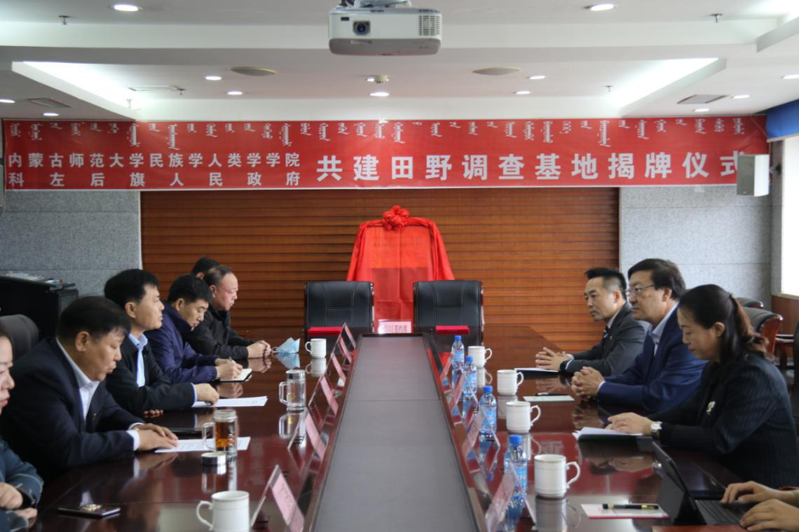 2021年4月23日上午,yl7703永利集团与科左后旗人民政府共建“田野调查基地”揭牌仪式,在内蒙古通辽市科左后旗甘旗卡人民政府办公室隆重举行。科左后旗旗长何志伟、常务副旗长于有志、统战部部长德力根昌及科左后旗民委、文旅局等部门相关负责人出席本次挂牌仪式。我校副校长王来喜、yl7703永利集团党总支书记包凤兰、副院长满达及科研办公室负责人范尊参加本次会议,会议由德力格昌主持。