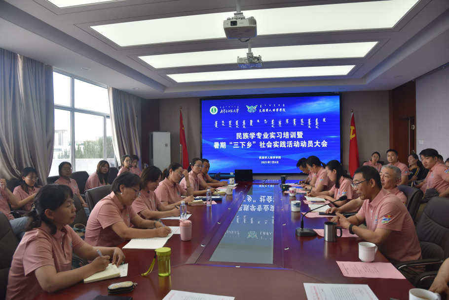 2021年7月6日下午3:00,yl7703永利集团民族学专业实习培训暨田野调查动员大会在学院607会议室隆重召开。纳日碧力戈教授、党总支书记包凤兰、院长乌日陶克套胡、副书记副院长阿荣、赵树冈教授、系主任张昆、行政教辅老师、各带队教师、2019级民族学全体本科生及部分研究生参加了会议。会议由满达副院长主持。