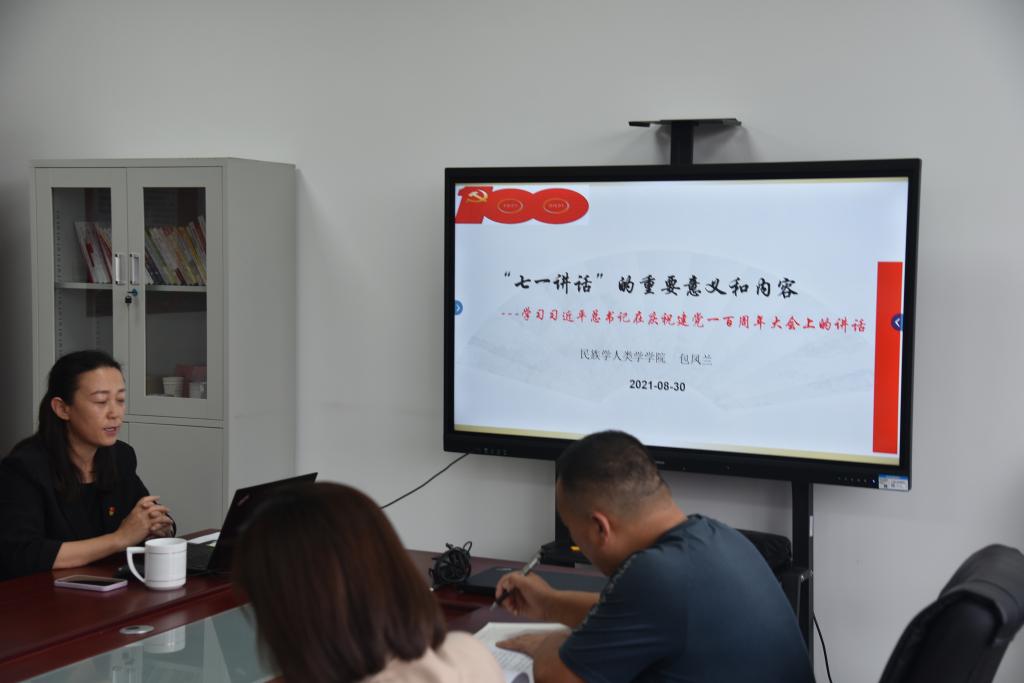 为党史教育专题组织生活会顺利开展,2021年8月30日下午在田楼611会议室,我院教工第二党支部邀请党总支书记包凤兰做了 题为“习近平总书记在庆祝建党100周年大会上的重要讲话精神”专题党课。本次党课由支部书记包双成主持,支部全体成员参加本次学习活动。