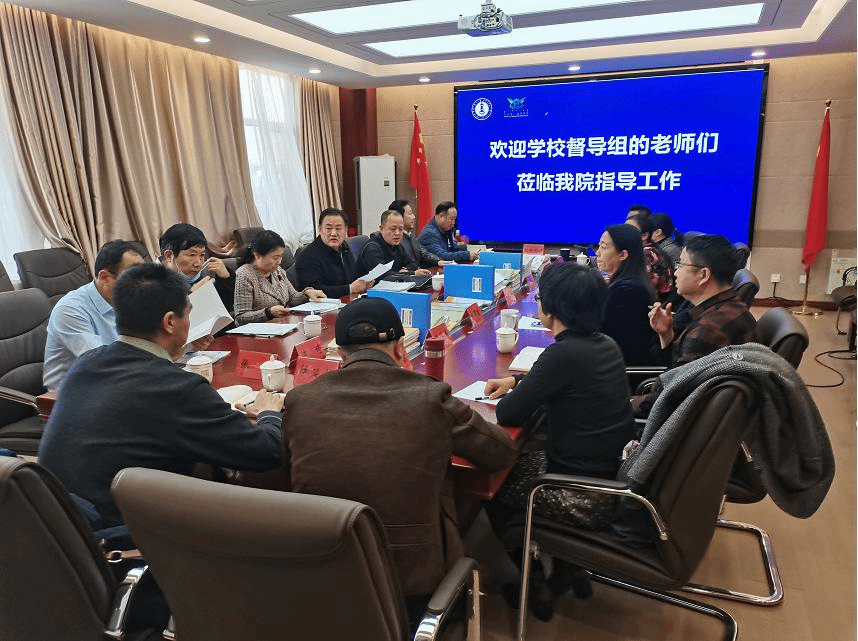 11月18日下午,学校督导组长郝保文一行10人来我院开展了2021-2022学年第一学期本科期中教学检查工作。我院领导班子全体成员及本科各专业的系主任参加了本次会议。