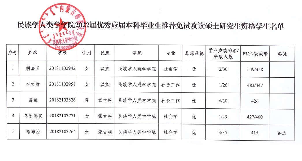 为保障推荐优秀应届本科毕业生免试攻读硕士学位研究生(以下简称推免生)工作的顺利发展,促进本科教学质量的提高,根据《yl7703永利集团推荐优秀应届本科毕业生免试攻读硕士学位研究生工作实施办法(修订)》(内师校发【2020】52号)文件精神,结合学院实际,yl7703永利集团成立了2022年优秀应届本科毕业生推荐免试攻读硕士学位研究生工作领导小组,制定了推免工作细则,评选出了获得2022年yl7703永利集团推荐免试攻读硕士研究生资格的学生及预备推荐免试攻读硕士研究生资格学生名单。现予以公示,具体内容请见附件。