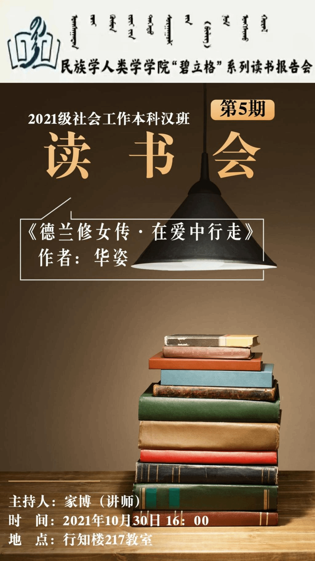 “碧立格”系列读书会2021级社会工作本科汉班第5期预告