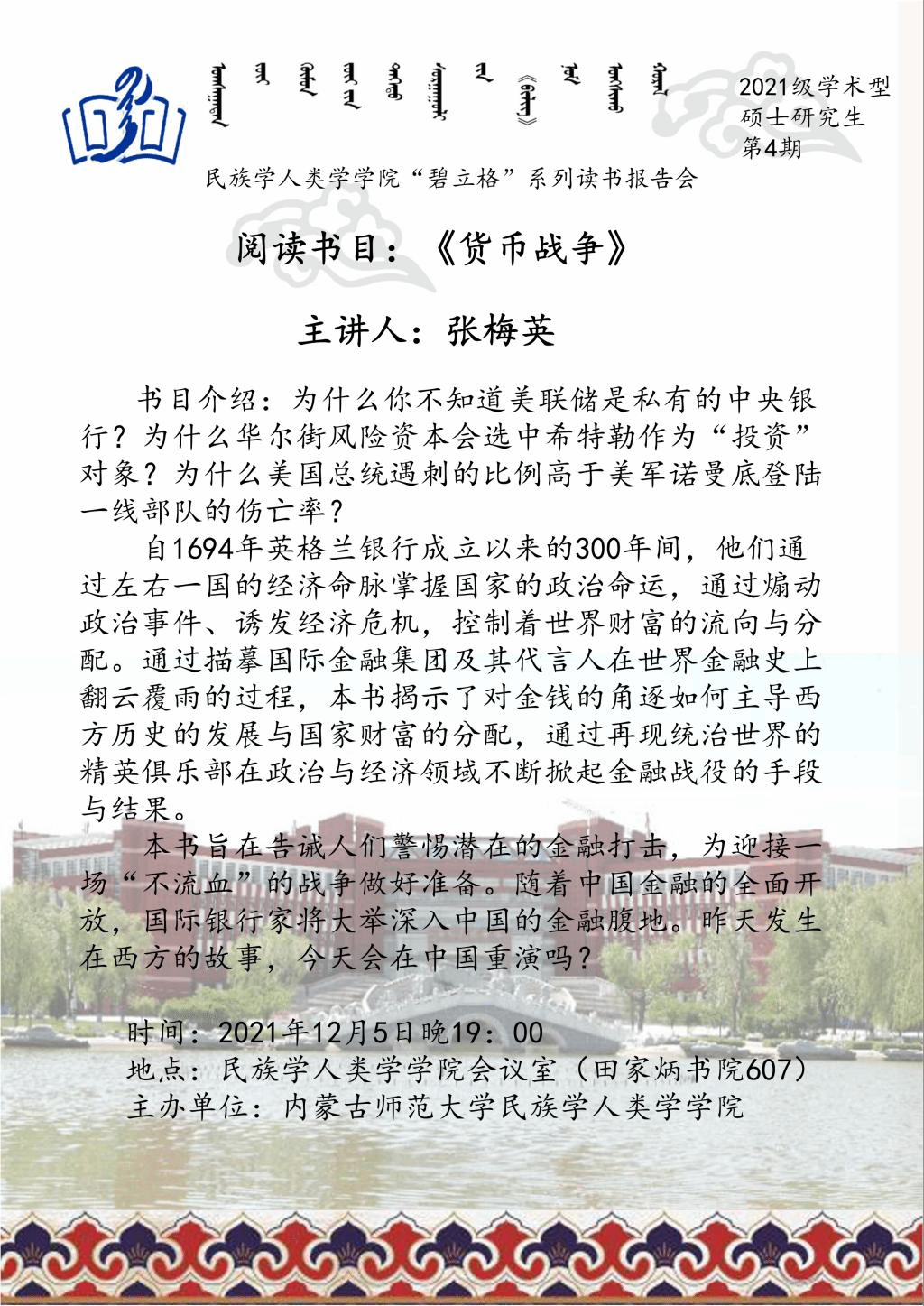 “碧立格”系列读书会2021级学术型硕士研究生第4期预告