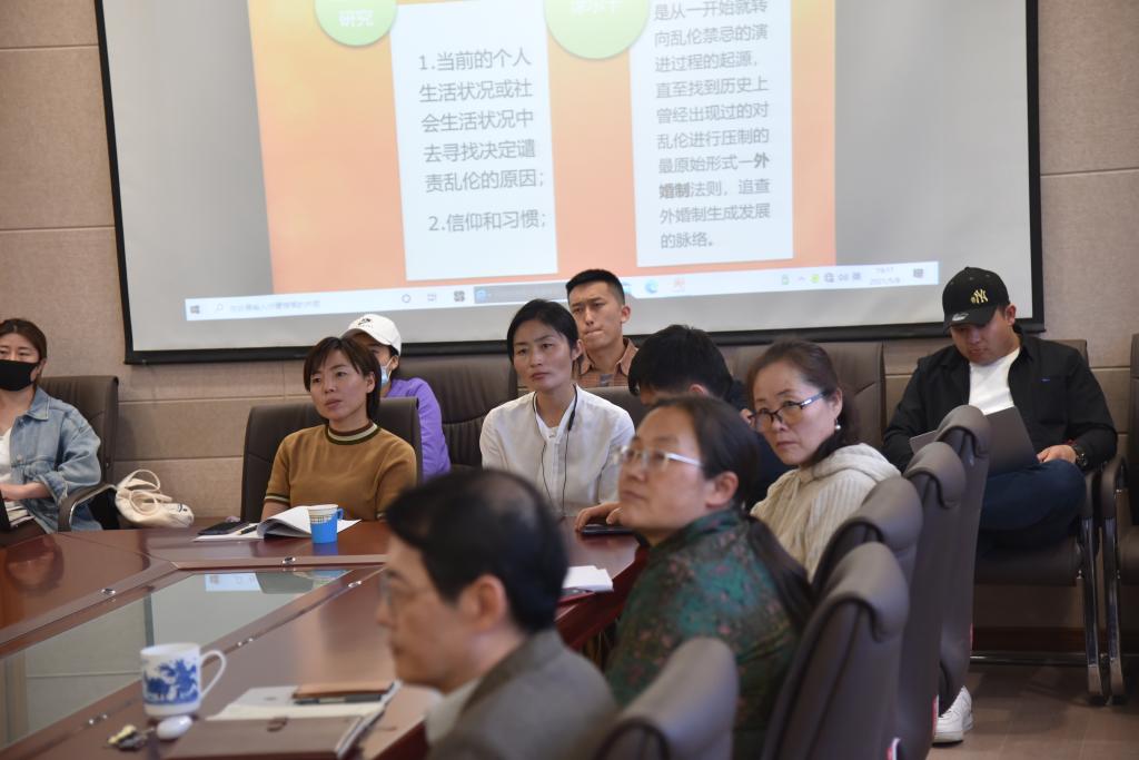 yl7703永利集团博士研究生第十六期“碧立格”系列读书报告会于2021年5月8日在田家炳书院607会议室举办。本期阅读书目为《乱伦禁忌及其起源》,报告人是我院2020级博士研究生于会新,本期的指导教师、主持人为我院的博士研究生导师 赵树冈 教授。参会嘉宾:阿荣、图雅、朱苏道、高娃、范尊、麦拉苏、萨出日拉图、云中。共读者为我院博士研究生和硕士研究生、本科生共计40余人。