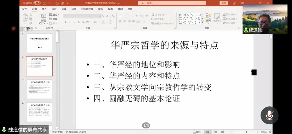 10月26日下午的“佛学文化研究院‘智慧甘露’系列讲座”由满达副院长主持,主讲人魏道儒先生做了题为“佛教与中国传统文化”的精彩讲座。在线参加此次学术活动的包括我院20级民族学本科生和宗教学研究生,此外还有我院与音乐学院、学报编辑部的10余位老师。