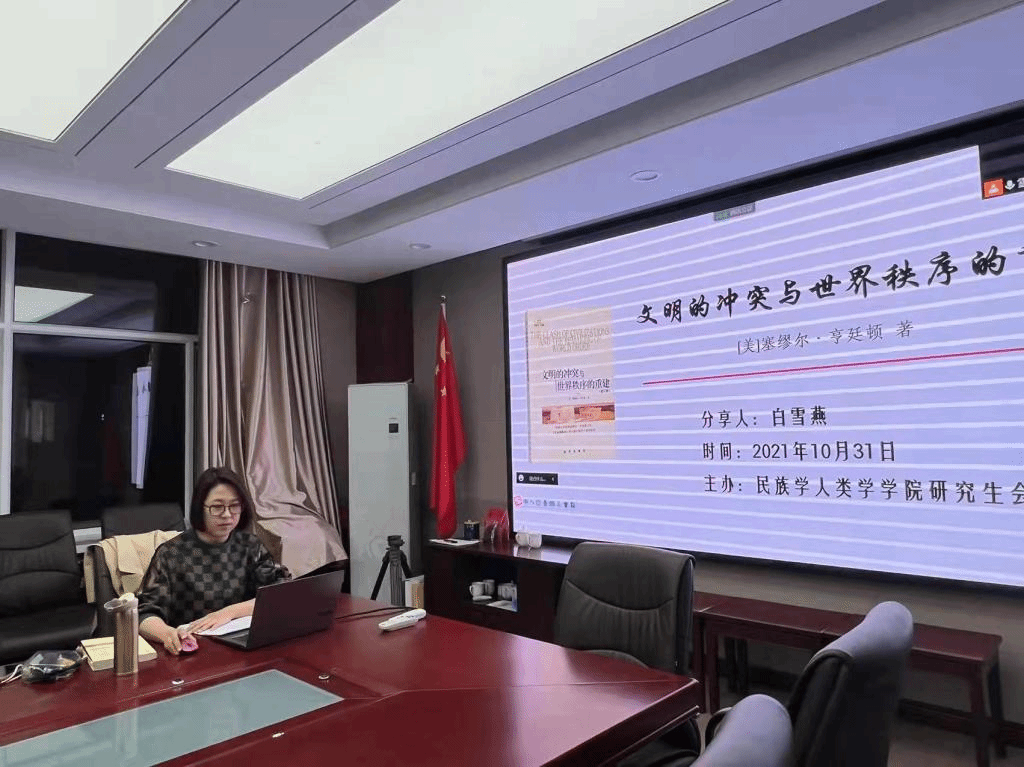 yl7703永利集团21级博士研究生第2期读书报告会于2021年10月31日晚19点在田楼607会议室举行,21级博士研究生全员参加本次报告会。本次读书报告会采取线上和线下两种方式同时进行,方便校内校外住宿的同学一并参与学习讨论。本次读书报告会的汇报书目是《文明的冲突与世界秩序的重建》,主讲人为马克思主义民族理论与政策专业博士研究生白雪燕同学。