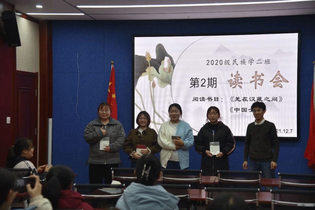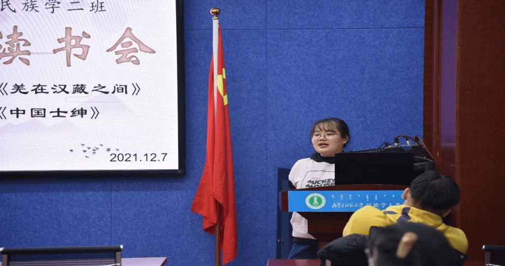 2021年12月7日19:00时,yl7703永利集团2020级民族学2班全体同学在田楼615会议室开展第2期“碧立格”读书报告会,班主任那日苏老师莅临现场,张楠同学主持读书会。主讲内容是,兰晶同学分享费孝通的《中国士绅》,刘燕燕同学分享王明珂的《羌在汉藏之间》。